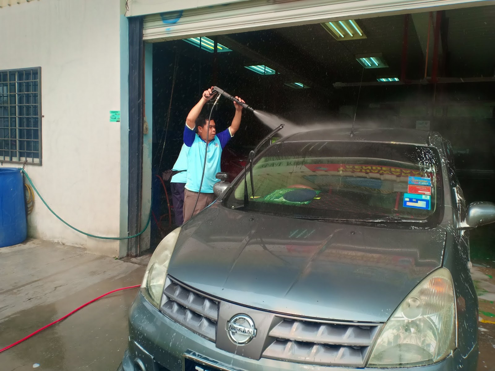 Proses mencuci kereta dari atas ke bawah